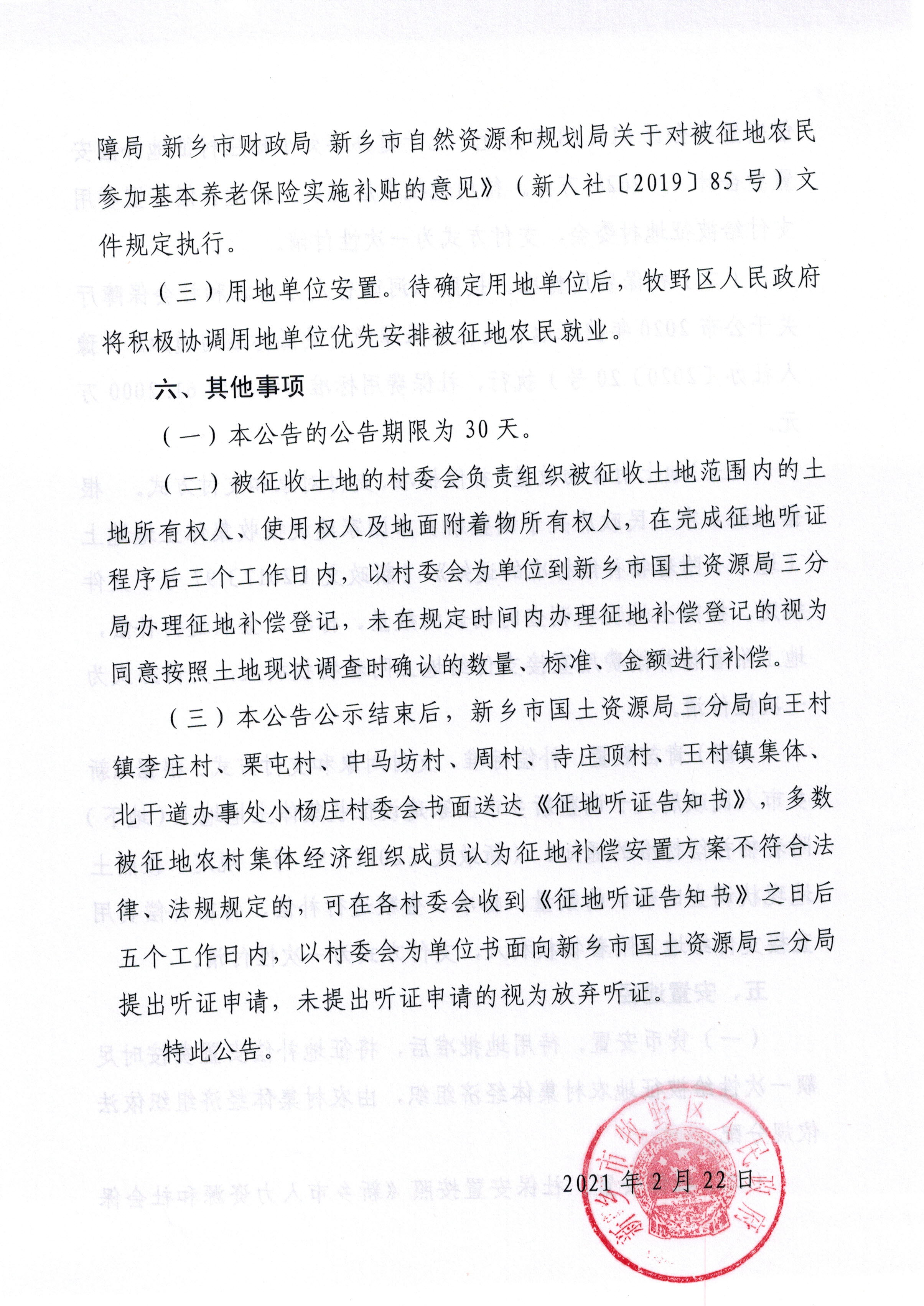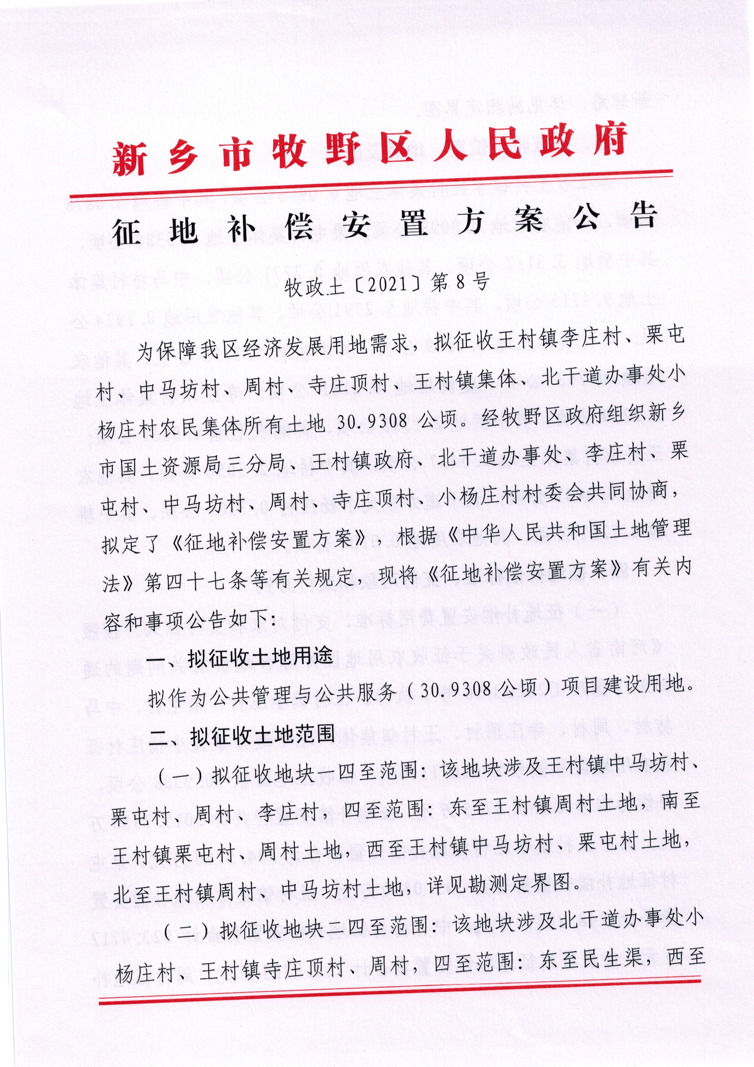 征地补偿安置方案公告(牧政土〔2021〕第8号)