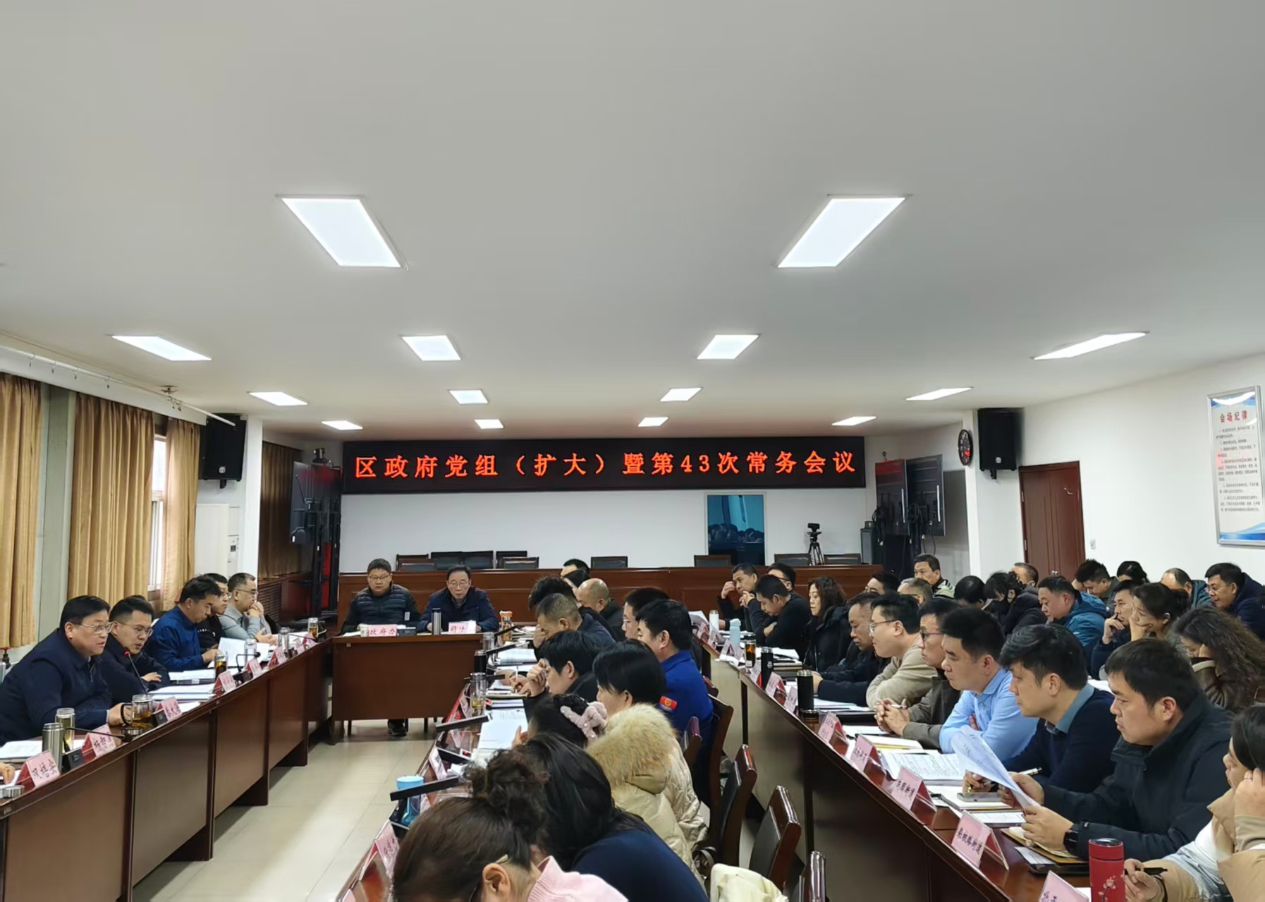 2026年1月25日,区长秦大海在区会议中心3号会议室主持召开区政府第43次常务会议,传达学习习近平总书记在省部级主要领导干部学习贯彻党的二十届四中全会精神专题研讨班开班式上的重要讲话精神,听取并安排集中整治群众身边不正之风和腐败问题、安全生产、消防安全、信访稳定、老龄、固废治理、欠薪治理、处非防非等工作。